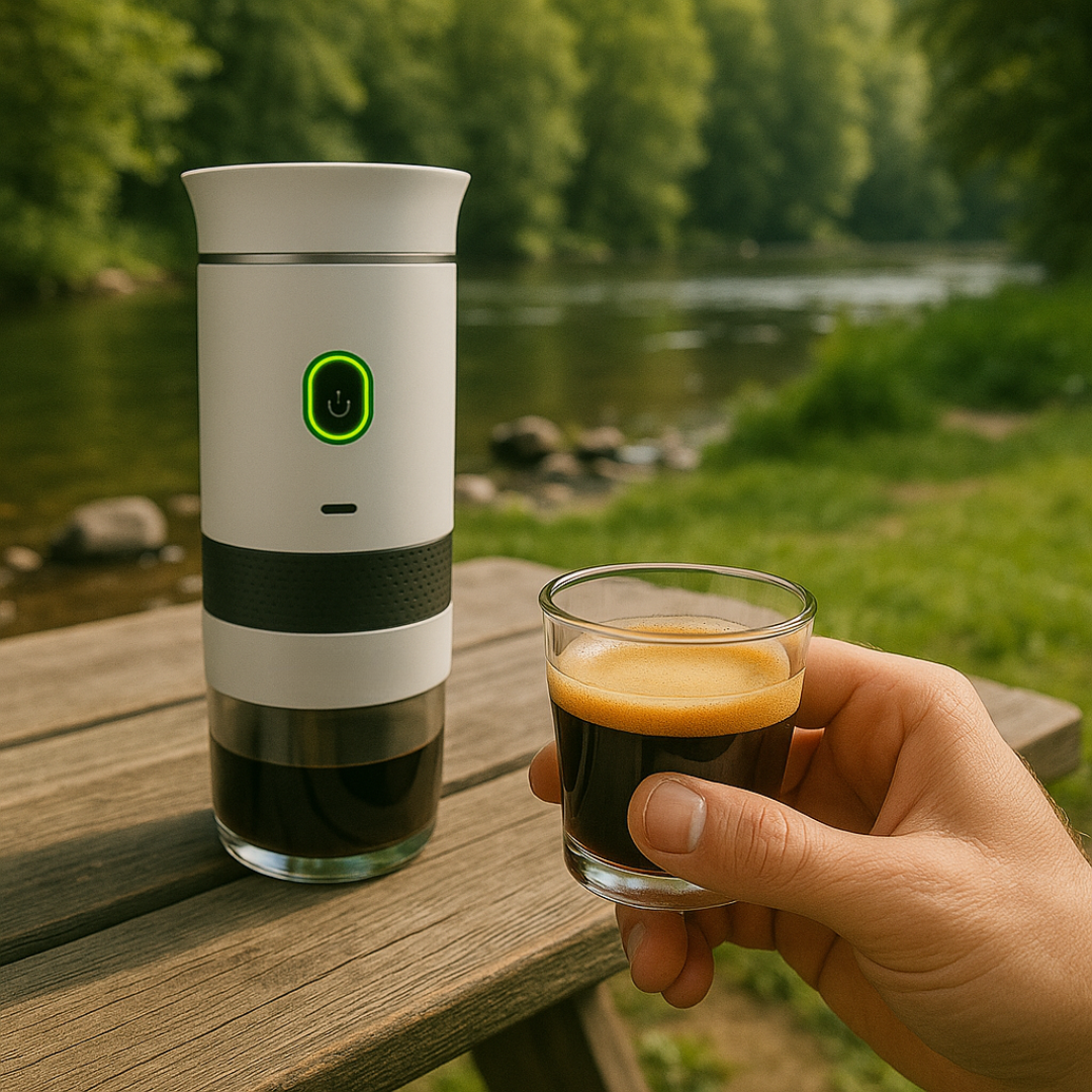אבל רוב מכונות הקפה דורשות חשמל, שקעים, והן לא באמת יוצאות איתך החוצה.