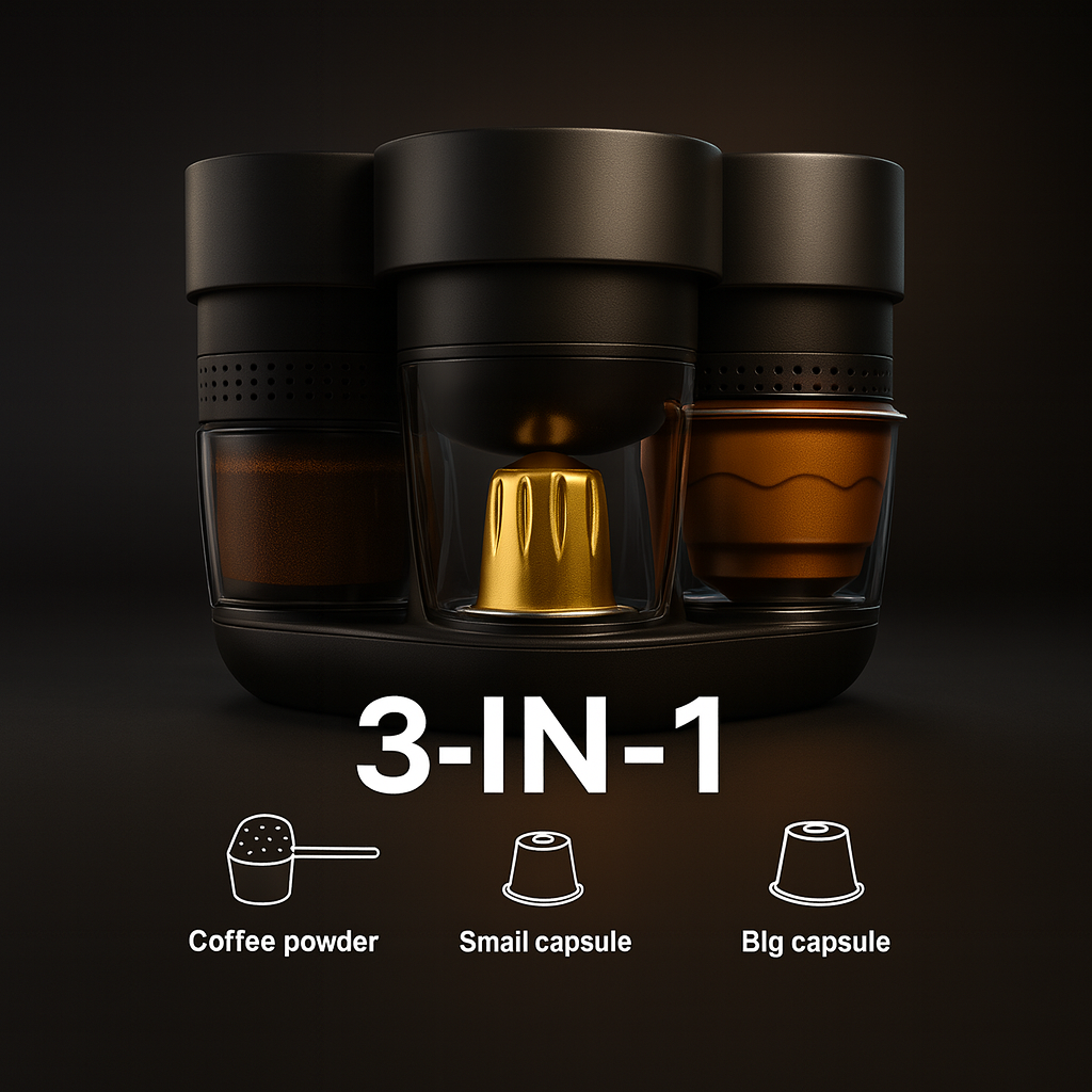 ✔️ Maximum compatibility – works with Nespresso capsules, larger pods, or your favorite ground coffee.